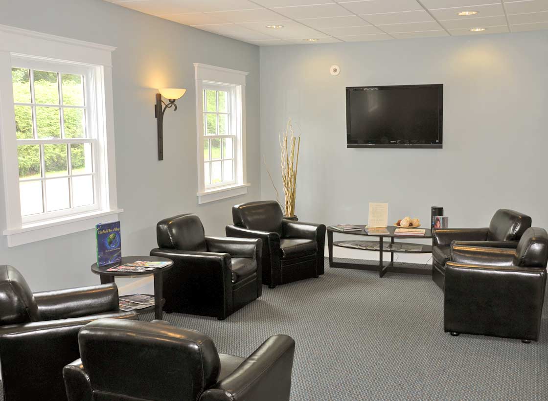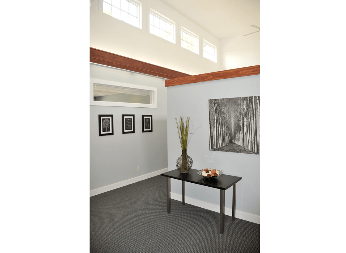 The addition to the original historic home is designed as a barn with reverse dormers, bringing natural light into the core of the office space. With careful land planning, landscaping and parking, this renovation gracefully fits in the village setting so important to the town.